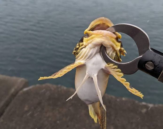 カジカは岸壁周辺から少し沖合に潜んでいることが多いため、遠投は不要です。