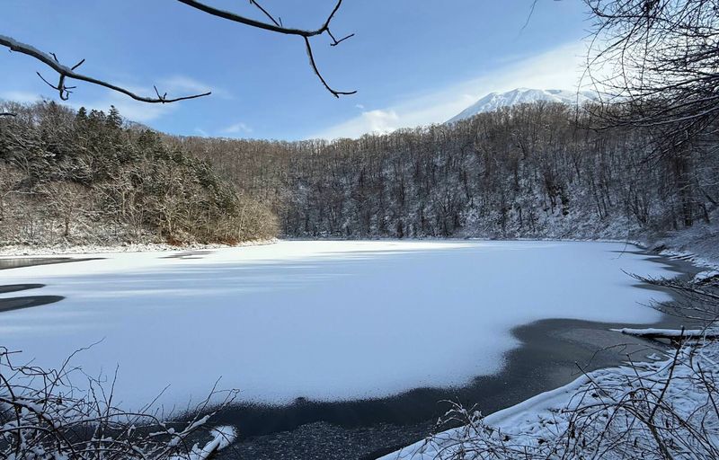 羊蹄山の北西山麓にひっそりと佇む「半月湖(はんげつこ)」は、火山活動によって生まれた静かな湖です。周囲を原生林に囲まれ、観光地化されすぎていない落ち着いた雰囲気が魅力で、ニセコ・倶知安エリアの中でも“知る人ぞ知る”自然スポットとして親しまれています。